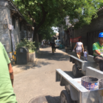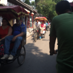 From here we move on to one of the adventures I’ve been looking most forward to the entire trip. The local experience. We start by taking a rickshaw drive to a local home for lunch. We hop off the buss and take about a 5 minute walk to a group of Rickshaw drivers and are told to hop into one of the cute little buggies, take note of the number on the outside of the rickshaw, and get comfy. Our driver is a sweet man who greets us and vigorously helps me into the buggy-pretty sure hes just trying to assess my weight and assessing if he had enough wheaties this morning. We get comfy and relax as he sits down and starts pedaling. We are quite a group of people, so I believe we take up about 20 rickshaws in total-a very long line of bikes and passengers, and this beast of a man takes us in and out of alley ways like its no big deal, narrowly missing parked cars, moving cars, cats and people. From our vantage point we are able to look into local homes and restaurants-the real stuff…not the tourist revamped hot spots, but the true Chinese way of life. We see happy children playing, dog walkers and local shoppers, many man and women, clearly construction or kitchen workers, sleeping on the ground during breaks from their labor and other evidence of a thriving and happy society of people living their day to day lives. After a 10 minute ride we stop at a building that is exactly like all of the other buildings on the route (Not totally convinced they didn’t just PICK a building out of the blue and drop us off-NO IDEA how they could tell it apart from the others) and tell us we have arrived at our lunch spot-a family home where the excited Chinese owners have made us a local meal! We all climb out and are led through a few alleyways to a beautiful 6 room home. We actually walk through their kitchen while they are preparing us lunch-which smells AMAZING- and are led into an outbuilding with 3 rooms set up for eating-plastic table clothes and utensils-like they are entertaining friends! We find a spot and sit, ready to be fed as usual. We meet our local guide, and man no more then 40, who says that the family that is preparing us lunch is very excited to serve us their traditional food that they have hand prepared for us-and they feel honored that we have come to visit them. The food starts to come out, and it is incredible. Chicken wings and vegetables, noodles and sprouts. Then come the dumplings. Oh wow the dumplings. We are given fresh-just out of the steamer-packages of happy in both veggie and meat options. The pork are tender and amazing-a taste I can’t describe exactly other then to say they are addictive. They are served with vinegar – these people get me- and the single most tender and flavorful “pot-stickers” that I have ever had. After a few minutes we notice that there is a distinct “chirping” noise coming from somewhere inside our room. We all scramble in horror worried that there is a bug of some sort beneath our feet, before realizing that there IS a bug….a cricket to be exact. A cricket the size of a MOUSE. In a cage. In the corner. Of the room we are in. Currently. One of the women in the group explains that this is considered an animal that brings good luck, and they are often caged and brought into the house (by construction crane I’m assuming. This thing is GIGANTIC) to help bring good fortune to all those who enter. (I hope it works. Gary could really use some hair on his calves). The local guide steps in to check on us and ask if we would like more dumplings. YES. Just yes. And he is happy to bring us 20 extras!.. enough for each of us at the table to have a few more. We leave happy and full. And a little luckier.