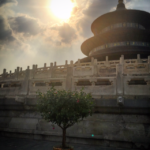 The local home we tour is small by our standards, but apparently quite large by local standards, and has been in this family for over 100 years. They are one of the few families in the area that own the home they are in, after being relocated early in the 90’s and coming back in early 2000 to re-purchase and move back in. We all gather around in the small courtyard of the home in between the bedrooms and kitchen, to meet the 60-ish Chinese man who owns the home-we refer to him as Asian Gene Simmons for obvious reasons-(see pic above). Gene tells us, with help from our local guide, about life in the inner city. He is very proud of his home, it is easy to see. And for good reason. It is filled with lucky trinkets, pictures of his beautiful family, his grandchildren are here, and his many many pets are here also. We are greeted by Chinese speaking birds and very cuddly cats, surrounded by empty cricket cages and as weary dog sits in the corner. This man is clearly content and happy in his western cut off jeans and sunglasses. He tells us he is retired and spends his time cooking and playing checkers-and taking care of his grandkids. After proudly showing us his home, we are off again. This time for a return to the buss and a quick drive to the next stop-The Temple of Heaven.
