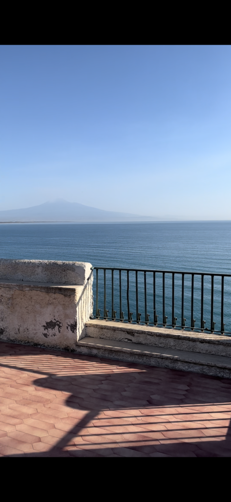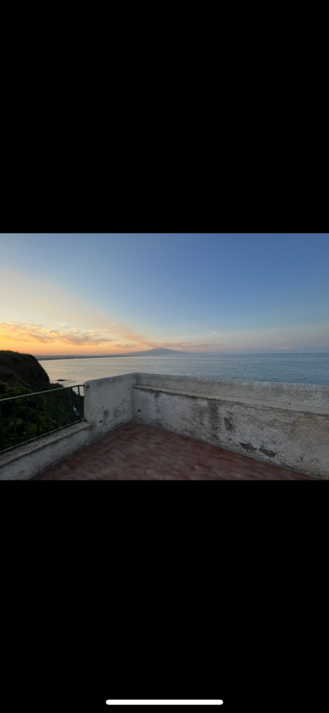Mr. Gianni uses google translate to talk to us- I’m not sure it does a great job- I don’t think he means to say, for example, “don’t worry about the Gate in the drive at the night- Daddy will not visit- Daddy is away and no one knows where Daddy is”. We just nod. “K…….”. After he gives us the various keys for the doors and outside community gate, shows us how to turn on all the outside lights, and gives us all hugs- he scurries off to his next appointment, Driving like he’s an F1 racer- and we run around looking in all the rooms, dipping our feet in the pool and realizing just how big this place is-Large gecko’s scattering- shocked someone is here. I’d be lieing if I said it wasn’t just a LITTLE creepy. None of us want to say it at first- what a thing to say after realizing that this mansion is ours for the week….but it is. Its HUGE and feels like it has a history- and we can’t yet put our finger on how sorted or innocent that is. I don’t think its had people in its halls in a while- although everything is clean and the sheets are new- I suspect we’re the first here in a bit, and you can almost hear the echo’s of the people past- the distant laughs and the faint splash of the pool…creepy like an old record. And then there is Etna- a perfectly framed view of her in the dining area, and she is front and center off the pool and deck area. Somehow comforting with how present and large she is.