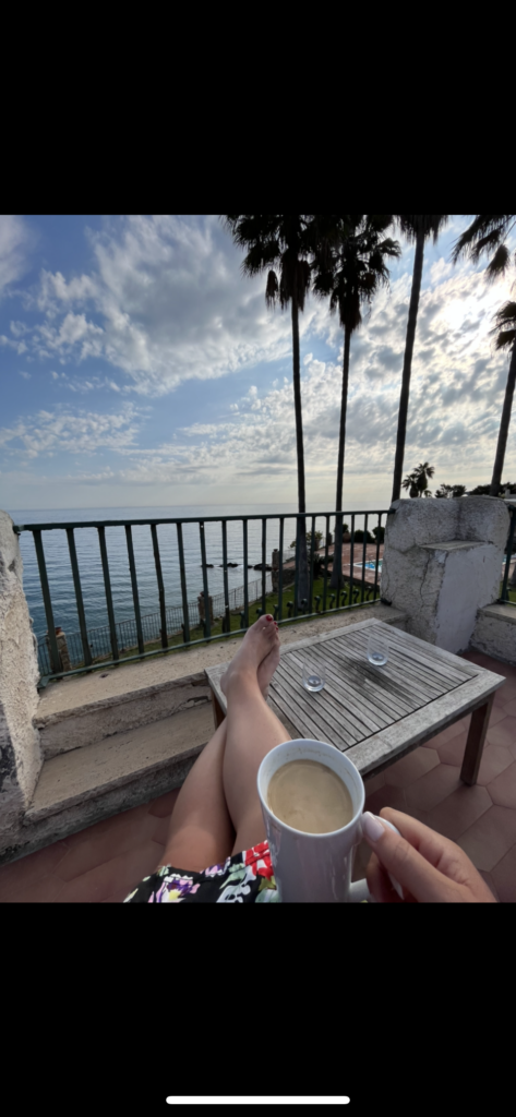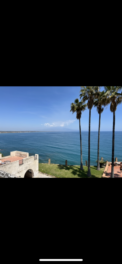 Flying into the island I see the mountains and turquoise water of Sicily come into view – just what we need after the packed 2 weeks we just had.