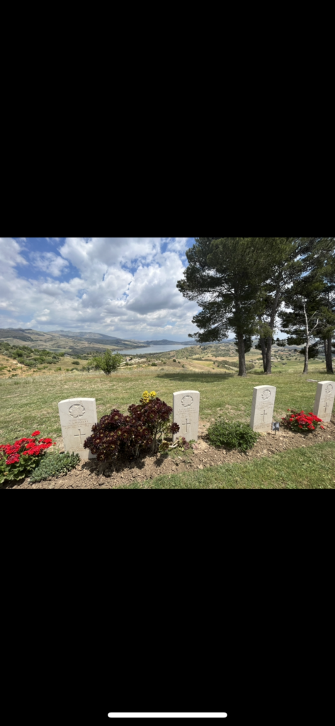 We make our way down the mountain through small village after small village we come to the Canadian War Memorial cemetery in Agira. The place we came here to see. The resting place of Harry Hicks.