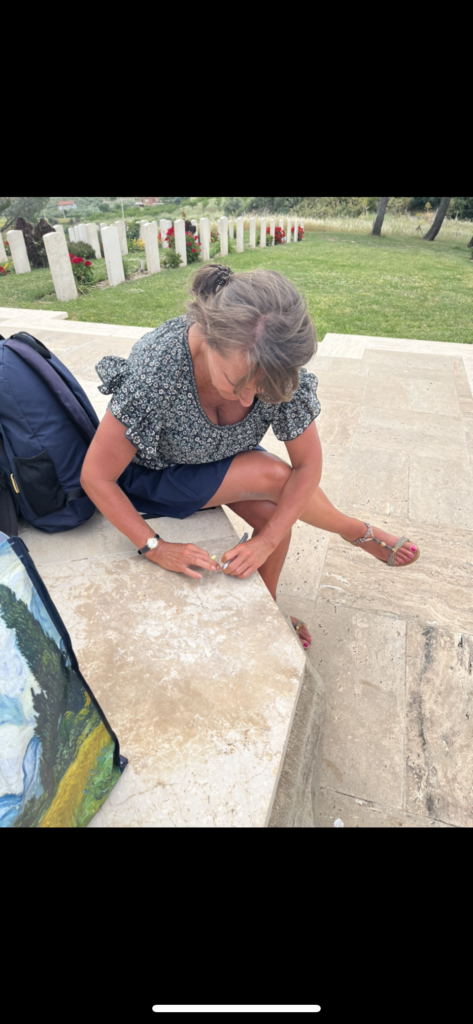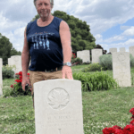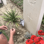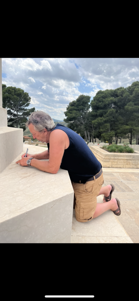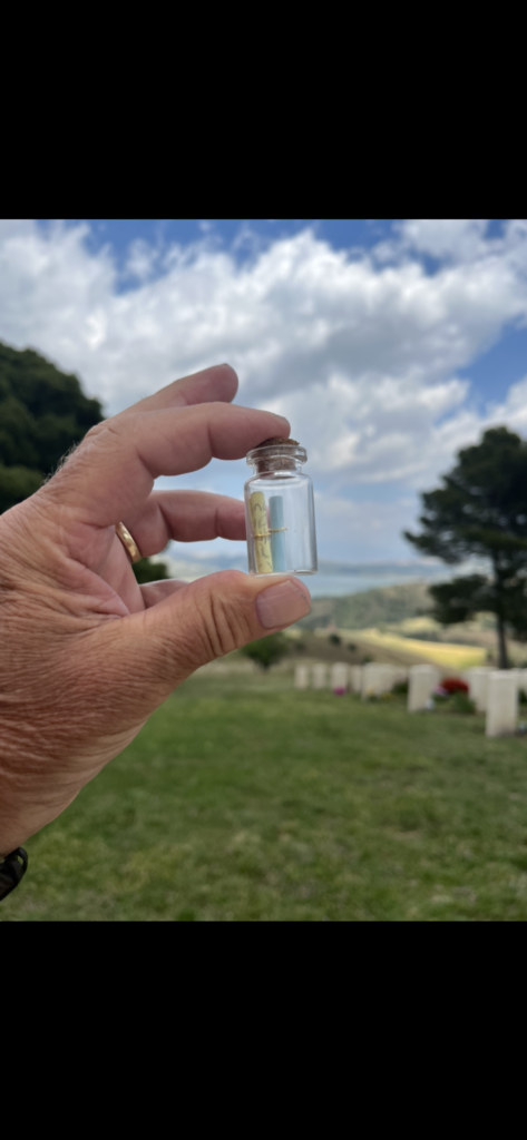 And there are 491 of them. Real care and work has gone into this ground by the Italians-the government keeps it up- and I have to say it’s the best kept area I’ve seen here. . Harry’s plot B E 195 Memorial ID 56410833. Gary and Nicole were here before, 10 years back- so he knows exactly where to go. I think he thought this time wouldn’t have been so emotional- and perhaps it is a different kind of emotional- but he forgot that time doesn’t heal- it just passes. And I can see the tear in his eye as he puts his hand on the headstone, hello Uncle Harry- its me again.…….