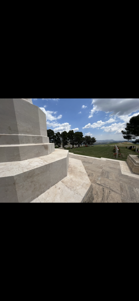 As we make our way up into the mountains I can feel the excitement mixed with heaviness. Walking in history is fascinating starting with marvel at how far we have come- but more often then not wandering down a path of “but why?”- especially when we deal with War History. Even more so with what is happening in Ukraine. As we drive along we picture the troops, here in July and August. Marching, a TRUE freedom convoy, fighting the German’s the whole way. The heat must have been unbearable with all their gear and the stress of the enemy to come. They advance towards Catenanuova- still fighting. The silence of the car lends itself to the same faint noises we heard in the villa- but giggles are replaced by boots on the ground, echo’s of music by bullets. Many towns we are driving through were liberated by the Canadians during that month- I can’t help but think that some here today wouldn’t be had it not been for their efforts- fathers would have been killed had it not been for the armed Canadian’s killed in their place. Sobering.