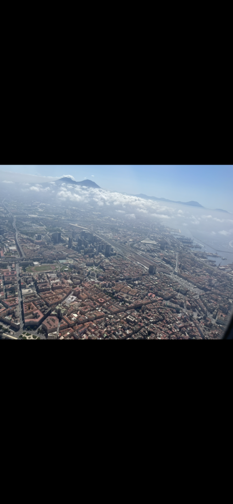 We take off and are blessed with the BEST VIEW Of Vesuvius and the Amalfi Coast- seeing the tip of the boot from the air- okay it wasn’t the tip of the boot. But I thought it was in my uneducated geographic mind….let me have this one. It made for the perfect pic and the #tipoftheboot tag. Its actually just the jet out into the sea of the tip of Amalfi around the corner from Naples.