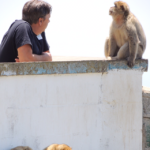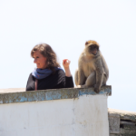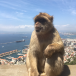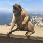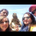 On the bus I am trying to show Nicole that she needs to stay away from the Monkeys…a safe distance. Because I have heard my sister talk about seeing the Barbary apes in Gibraltar for years….and I just know she’s going to try and get one in her suitcase. So i bring up videos of tourists getting jumped on by the monkeys- thinking I’m going to scare her into being careful….but they end up being really funny actually….and we are crying laughing by the time we see the huge rock of Gibraltar and reach passport control. All I’ve done is show Nicole how to get them to jump on her. I’m pretty sure she has peanuts in her purse.