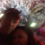 He’s tells us the history of the Monkeys as we make the climb to the next stop. The Apes were not brought here by the British-they were already here in 1704 when Gibraltar was captured by Britain…. but legend has it that as long as the Apes stay in Gibraltar, so can the British. So when the ape population was declining, Churchill brought in more. And now there are about 300-in about 5 troops (or family groups)- and they occupy the top of the rock and are a protected species. They are fed and vetted and taken care of on the top-so that they don’t come down into the town proper and do damage. Because they are monkeys after all. So as we slow down for our next stop we see them. Dozens of them. One catches a ride on our buses side mirror and gives us a show. Paul says she’s pregnant-and she is looking for peanuts-which she knows he always keeps in the bus. …. so she reaches out, digs her claws into his arm and pulls it out, and smacks him, and nudges him….and he finally gives in and gives her some peanuts and away she goes.