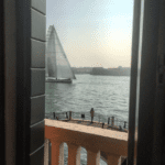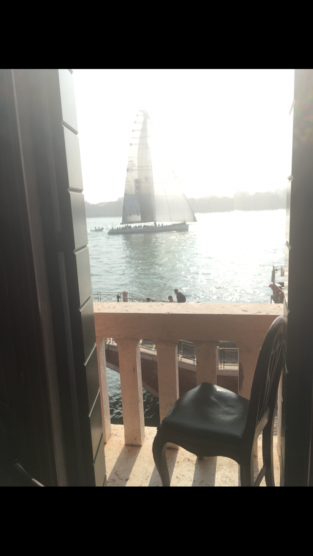 WE pull up to our Pensione and Unload-up to our balconies and windows overlooking Venice and a corner of its nicest waterways-with a view towards Murano Island and a small tributary water way to our side. We spend a few hours up in our rooms on our balconies with wine and giggles. We can’t leave just yet. As we sit there, a group of sail boats goes by….LARGE said boats, and we realize there there is some sort of regatta today! AMAZING!!! We take lots of pictures, the sail boats looking foreign and like the belong all at the same time here in this water world.