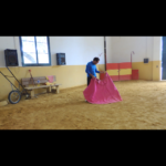 But he does. There is Spanish music playing in the background from the horse demonstration…..and He walks over and picks up the Cape. . He stares into the dirt, holds the cape like its a delicate woman, and starts to brush the dirt with the bottom of the cape….dragging it back and forth…pulling it behind him and assuming the perfect matador pose. I take video and again, none of us can speak. Its one of the most beautiful demonstrations of passion for an art I’ve ever seen. The music, the look on his face, the hot air and the smell of the farm. Its only described as infectious by Nicole and I for the next 3 hours as we chat about that one time a Famous Matador gave us a private showing……