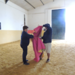 In the video of his demonstration you can hear me say “yeah. I’d charge that”. …..MEANING I can see why the bull charges!! OF COURSE it sounds much worse after it comes out my mouth and again Nicole and Paqui are having fits of laughter-while I try to explain myself. Its embarrassing.